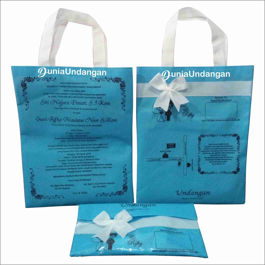 Sablon tas kain spunbond 25x35 cm / pernikahan/ tas undangan / seminar. Undangan tas bermanfaat undangan pernikahan kain tas. Contoh undangan pernikahan tak harus kertas, selembar kain pun bisa jadi . Hal tersebut menjadi inspirasi dari desain undangan yang . Sistem pencetakan pada kertas biasanya .